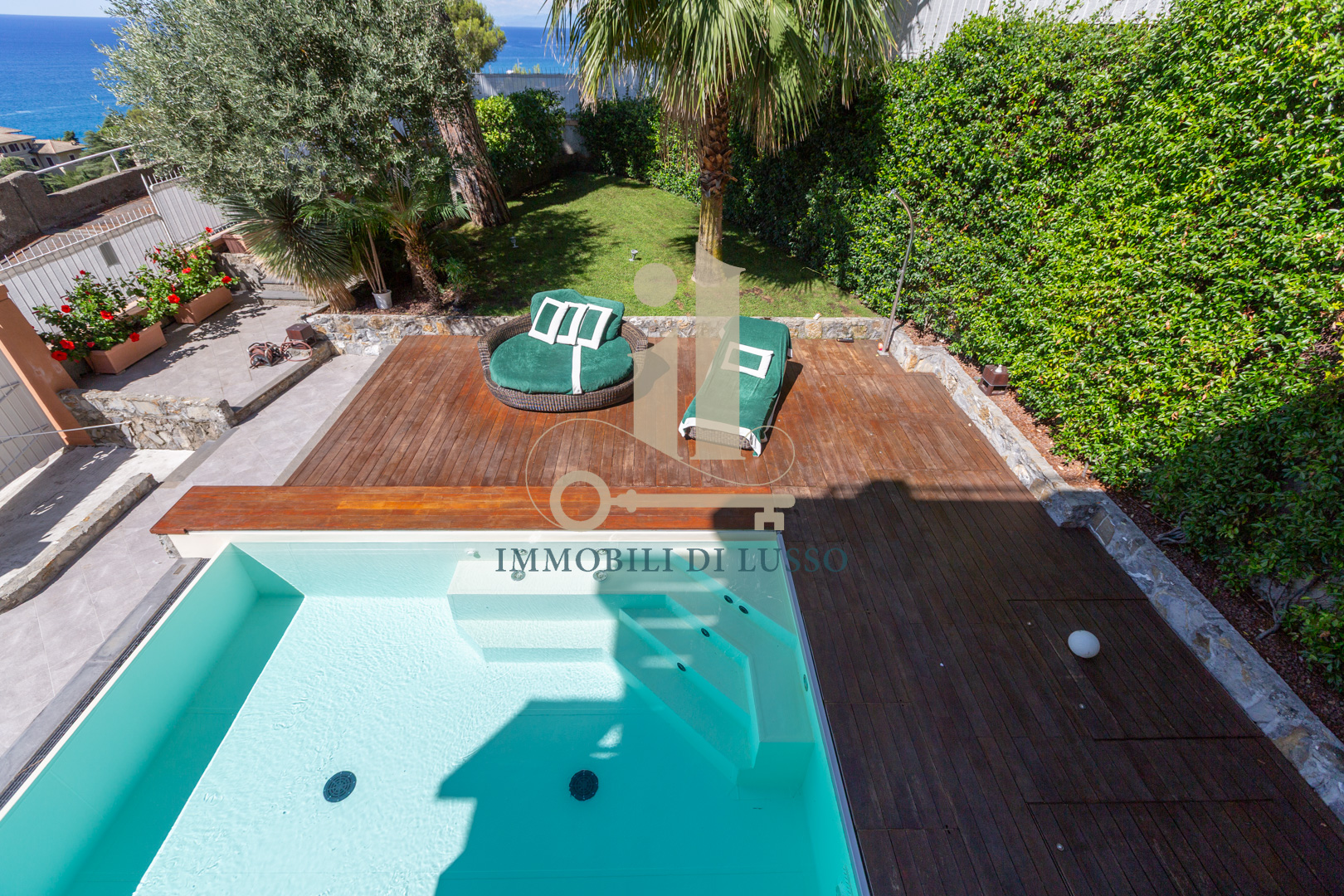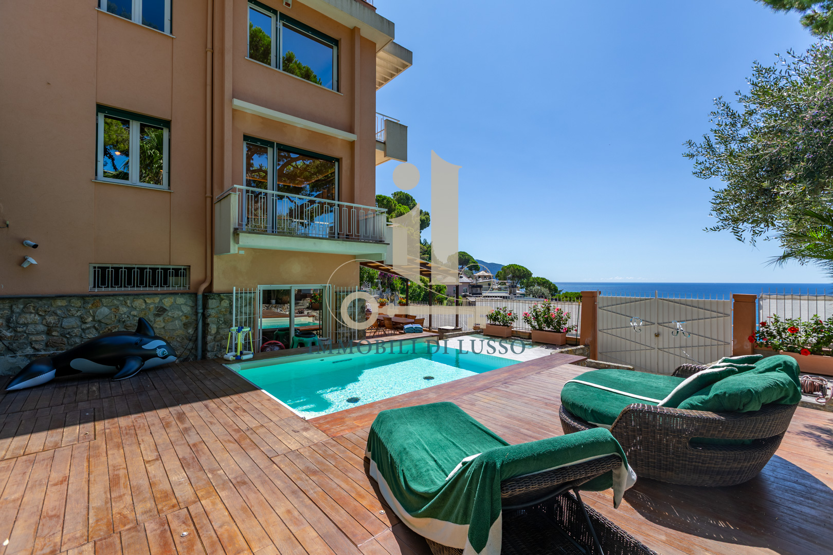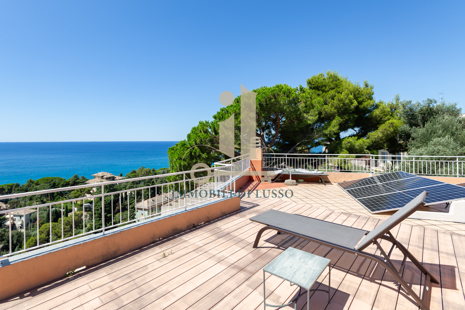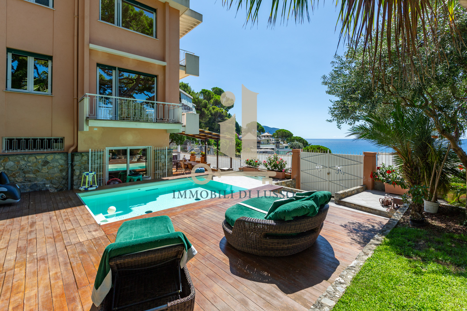Pieve Ligure a due passi da Bogliasco proponiamo in vendita rara opportunità in contesto privato. Villa unifamiliare posta in posizione panoramica con straordinaria vista mare, dotata di ogni comfort e di modernissimo impianto di domotica. Alla proprietà, distribuita su più livelli, con giardino piantumato e flora mediterranea, si accede sia attraverso un accesso pedonale, sia dal box. Gli spazi esterni sono molto curati: la terrazza al piano con piscina e solarium è un'oasi di tranquillità dove lo sguardo spazia dal verde del giardino al blu infinito del mare. Adiacente alla piscina si trova una zona con tavolo da pranzo e poltrone perfette per la convivialità e il relax. Internamente la proprietà è elegantemente ristrutturata: dalla porta principale si accede al primo livello della villa con ampio ingresso dove padroneggia la bella scala in legno che conduce ai piani superiori. Qui si trova la grande cucina abitabile con accesso diretto alla bella terrazza con vista panoramica. Su questo livello si trovano un locale termico ed una stanza adibita a lavanderia. Salendo al piano superiore arriviamo alla zona giorno: un grande e meraviglioso open space dalla configurazione molto particolare; legno e vetro, luce e colori si fondono perfettamente con la natura esterna creando un ambiente molto suggestivo, reso ancora più accogliente dal camino che ci rimanda a momenti di serenità in famiglia. Al piano è presente una sala giochi, una camera matrimoniale con cabina armadio e un bagno con doccia. Salendo al secondo piano troviamo tre ampie camere, una grande camera padronale con bagno en suite corredata da vasca, doccia e doppio lavandino. La stanza ha due luminosissime finestre fronte mare con affaccio sul balcone. Salendo all'ultimo piano troviamo una funzionale sauna dotata di una finestra dalla quale si può godere di una splendida vista sul mar Ligure. Sulla grande terrazza solarium sono stati posizionati i pannelli fotovoltaici. La proprietà si completa di due posti auto coperti sul retro. Questo immobile è perfetto per una famiglia che cerca la tranquillità pur restando vicino a tutti i servizi.
