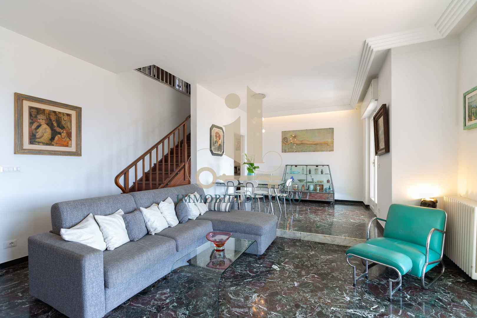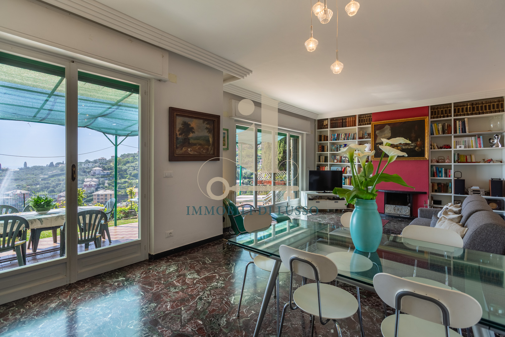 Sulla Collina di San Michele di Pagana, all'interno di un contesto privato, proponiamo in vendita villa indipendente sviluppata su due livelli. La proprietà, in posizione dominante, offre uno splendido panorama sul Golfo del Tigullio. L'ingresso, posto al piano superiore è dedicato alla zona notte, con tre grandi camere matrimoniali molto luminose, dotate di ampie finestre, dalle quali si gode di un bellissimo affaccio sul mare; al piano si trova anche un bagno con doccia. Scendendo attraverso una scala, si arriva al piano inferiore, nell'ampia zona living aperta verso l'esterno. Qui il soggiorno con camino e sala da pranzo godono di una meravigliosa vista sulla collina sottostante e sul Golfo di Rapallo, grazie a due grandi vetrate che si affacciano direttamente sul terrazzo e sul giardino. La cucina abitabile, comunicante con la zona giorno, ha accesso al giardino, dove si trova una zona attrezzata per poter mangiare immersi nella tranquillità del verde. A questo piano si trovano anche un'ulteriore camera matrimoniale ed un bagno con doccia. Al piano seminterrato, accessibile attraverso una scala esterna, si trova un locale lavanderia ed una cantina. La villa è dotata di accesso carrabile privato, con due ampi box e piazzale per posti auto esterni.