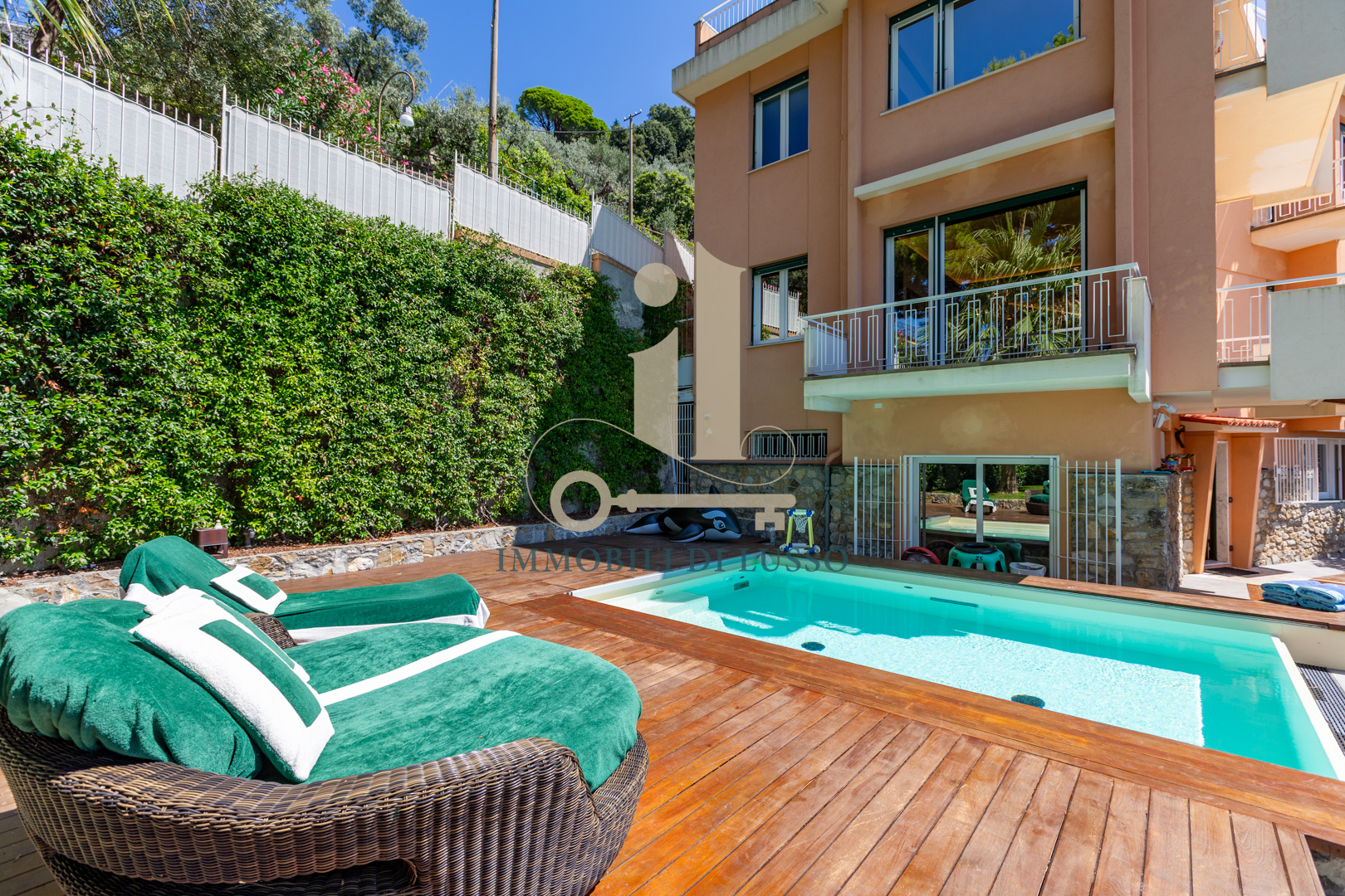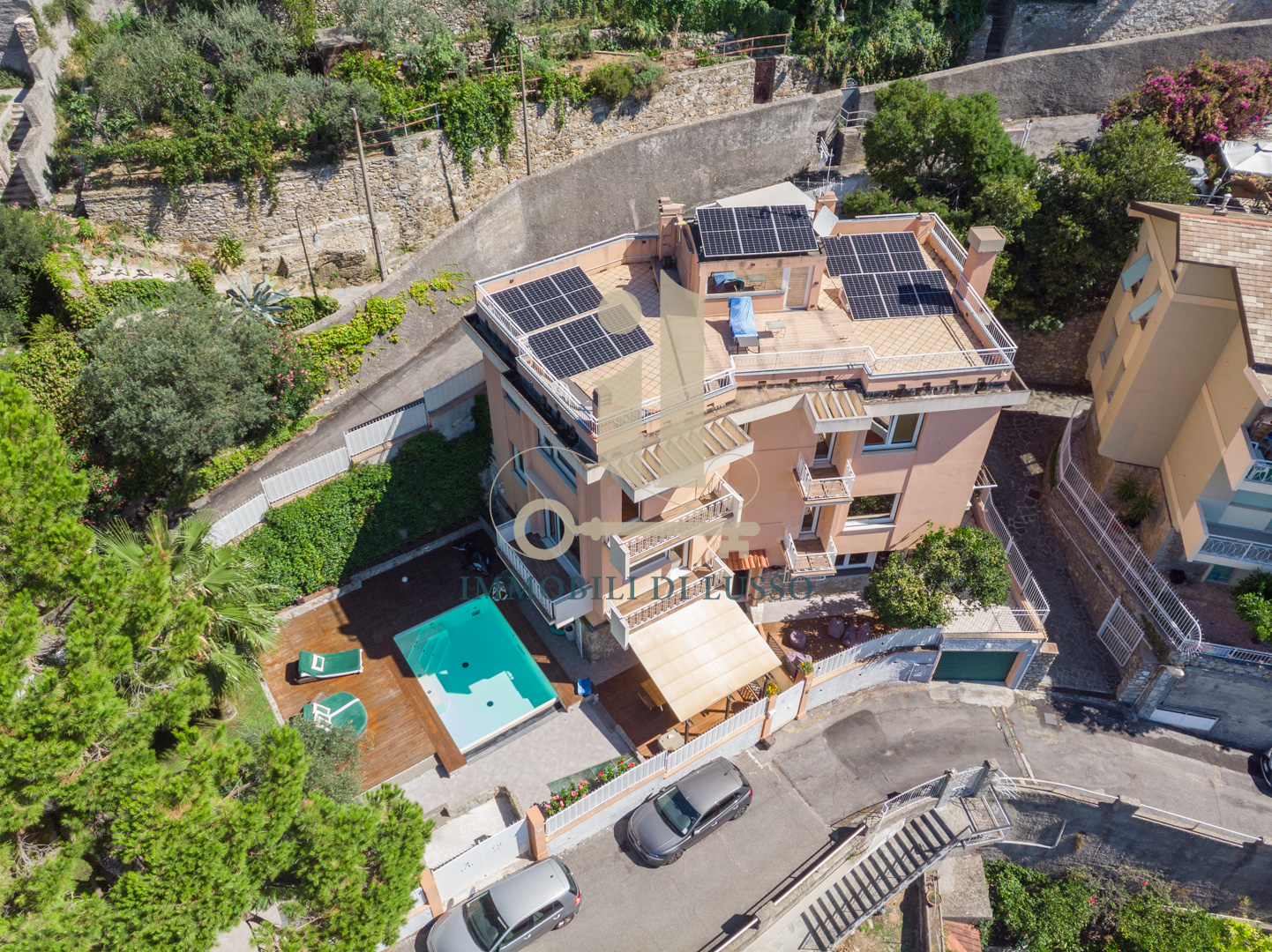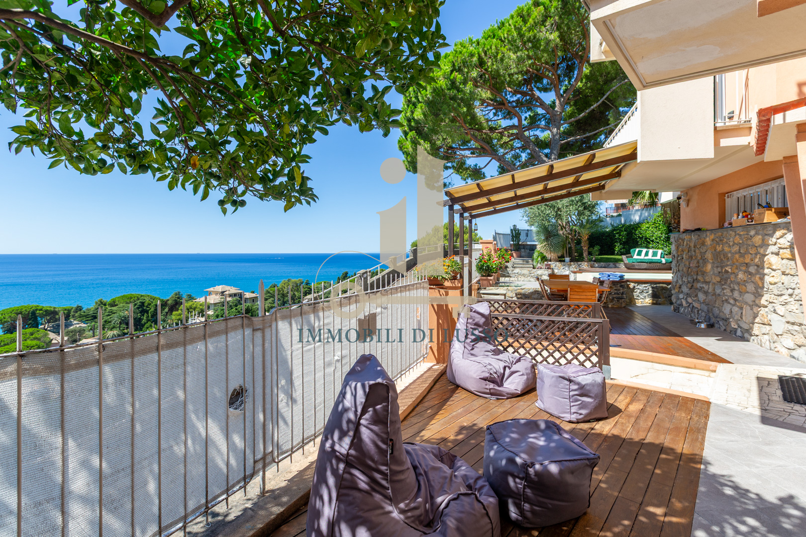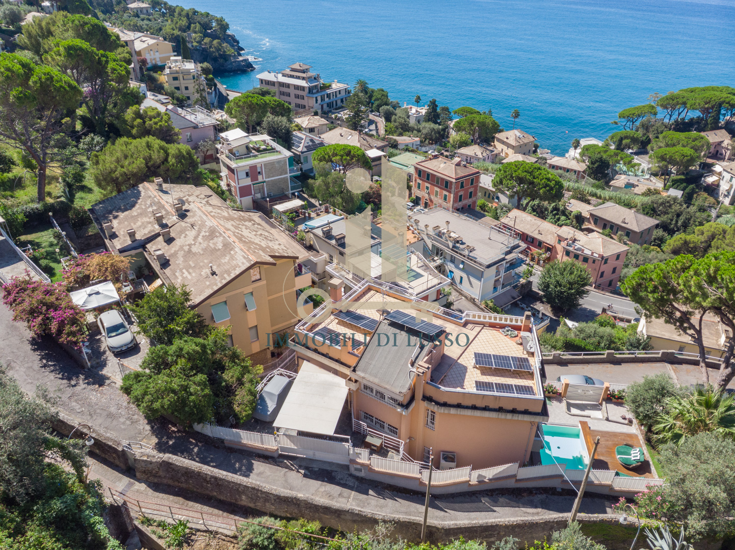 Pieve Ligure a due passi da Bogliasco proponiamo in vendita rara opportunità in contesto privato. Villa unifamiliare posta in posizione panoramica con straordinaria vista mare, dotata di ogni comfort e di modernissimo impianto di domotica. Alla proprietà, distribuita su più livelli, con giardino piantumato e flora mediterranea, si accede sia attraverso un accesso pedonale, sia dal box. Gli spazi esterni sono molto curati: la terrazza al piano con piscina e solarium è un'oasi di tranquillità dove lo sguardo spazia dal verde del giardino al blu infinito del mare. Adiacente alla piscina si trova una zona con tavolo da pranzo e poltrone perfette per la convivialità e il relax. Internamente la proprietà è elegantemente ristrutturata: dalla porta principale si accede al primo livello della villa con ampio ingresso dove padroneggia la bella scala in legno che conduce ai piani superiori. Qui si trova la grande cucina abitabile con accesso diretto alla bella terrazza con vista panoramica. Su questo livello si trovano un locale termico ed una stanza adibita a lavanderia. Salendo al piano superiore arriviamo alla zona giorno: un grande e meraviglioso open space dalla configurazione molto particolare; legno e vetro, luce e colori si fondono perfettamente con la natura esterna creando un ambiente molto suggestivo, reso ancora più accogliente dal camino che ci rimanda a momenti di serenità in famiglia. Al piano è presente una sala giochi, una camera matrimoniale con cabina armadio e un bagno con doccia. Salendo al secondo piano troviamo tre ampie camere, una grande camera padronale con bagno en suite corredata da vasca, doccia e doppio lavandino. La stanza ha due luminosissime finestre fronte mare con affaccio sul balcone. Salendo all'ultimo piano troviamo una funzionale sauna dotata di una finestra dalla quale si può godere di una splendida vista sul mar Ligure. Sulla grande terrazza solarium sono stati posizionati i pannelli fotovoltaici. La proprietà si completa di due posti auto coperti sul retro. Questo immobile è perfetto per una famiglia che cerca la tranquillità pur restando vicino a tutti i servizi.