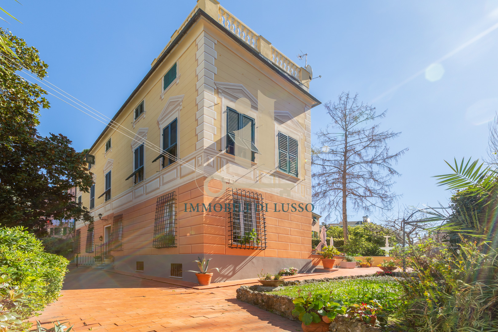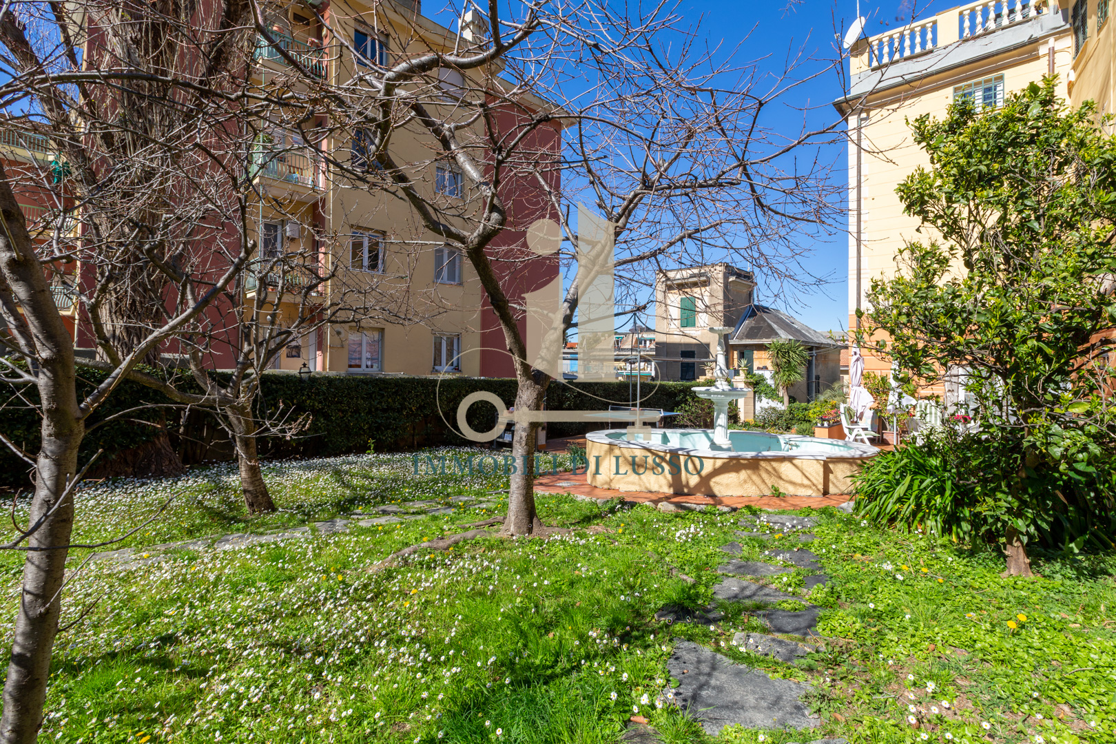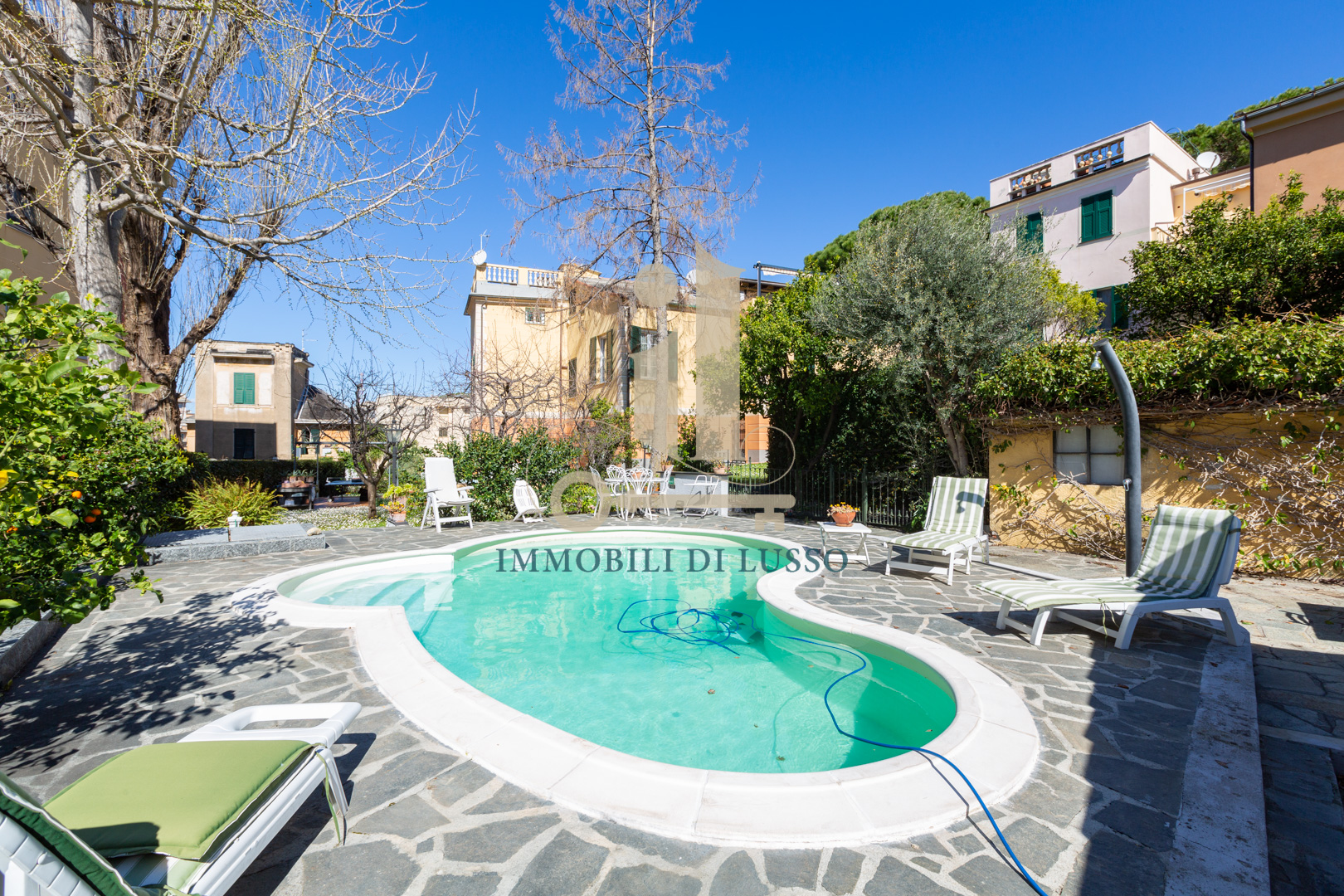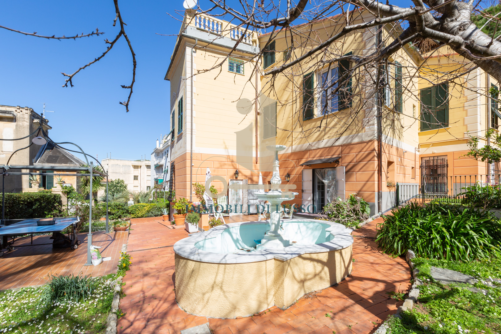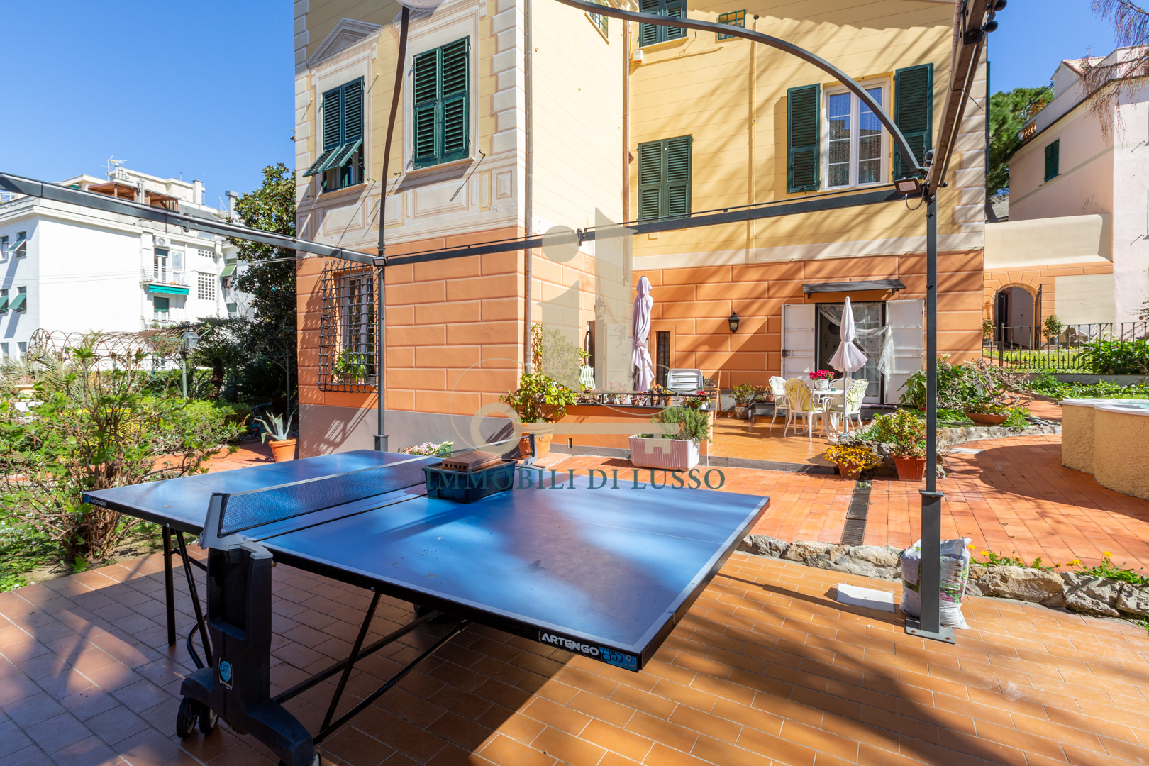 Genova Quinto, proponiamo in vendita, in Via Majorana, porzione di villa disposta su tre livelli appena ristrutturata in tutte le sue parti esterne. Attraverso una via di proprietà, si accede all'immobile, che si trova in contesto tranquillo e comodo ai servizi; immerso nel verde di un inaspettato giardino con piante e alberi. Nel grande giardino, molto curato e bene esposto si trova anche una bella piscina dove poter godere di momenti spensierati con familiari ed amici; esternamente si trova anche un'ampia e utile pool house. Questa casa, dallo stile elegante e con bellissimi affreschi in alcune delle sue stanze ha una superficie di circa 320 mq. Il piano terra è composto da spazioso ingresso, cucina abitabile con lavanderia, soggiorno con soffitto affrescato, ricco di luce grazie alle doppie finestre, con accesso diretto al giardino ed allo spazio esterno dove si trova anche una fontana. Attraverso una comoda scala in marmo si accede al primo piano dove si trova la zona notte, con due camere matrimoniali, una delle quali dotata di bellissimo soffitto a volta affrescato; un grande bagno con doccia, uno studio ed un piccolo bagno di servizio completano il piano. Al secondo piano mansardato, troviamo un vero e proprio appartamento composto da salotto con accesso diretto al terrazzo dal quale si gode di una bella vista sugli spazi esterni sottostanti; cucina abitabile, soggiorno con scala interna che conduce ad un altro terrazzo, con vista sulla città e sul mare in lontananza, due grandi camere matrimoniali, un bagno e un sottotetto attualmente adibito a magazzino. Una comoda e spaziosa cantina completa questa unità immobiliare.
