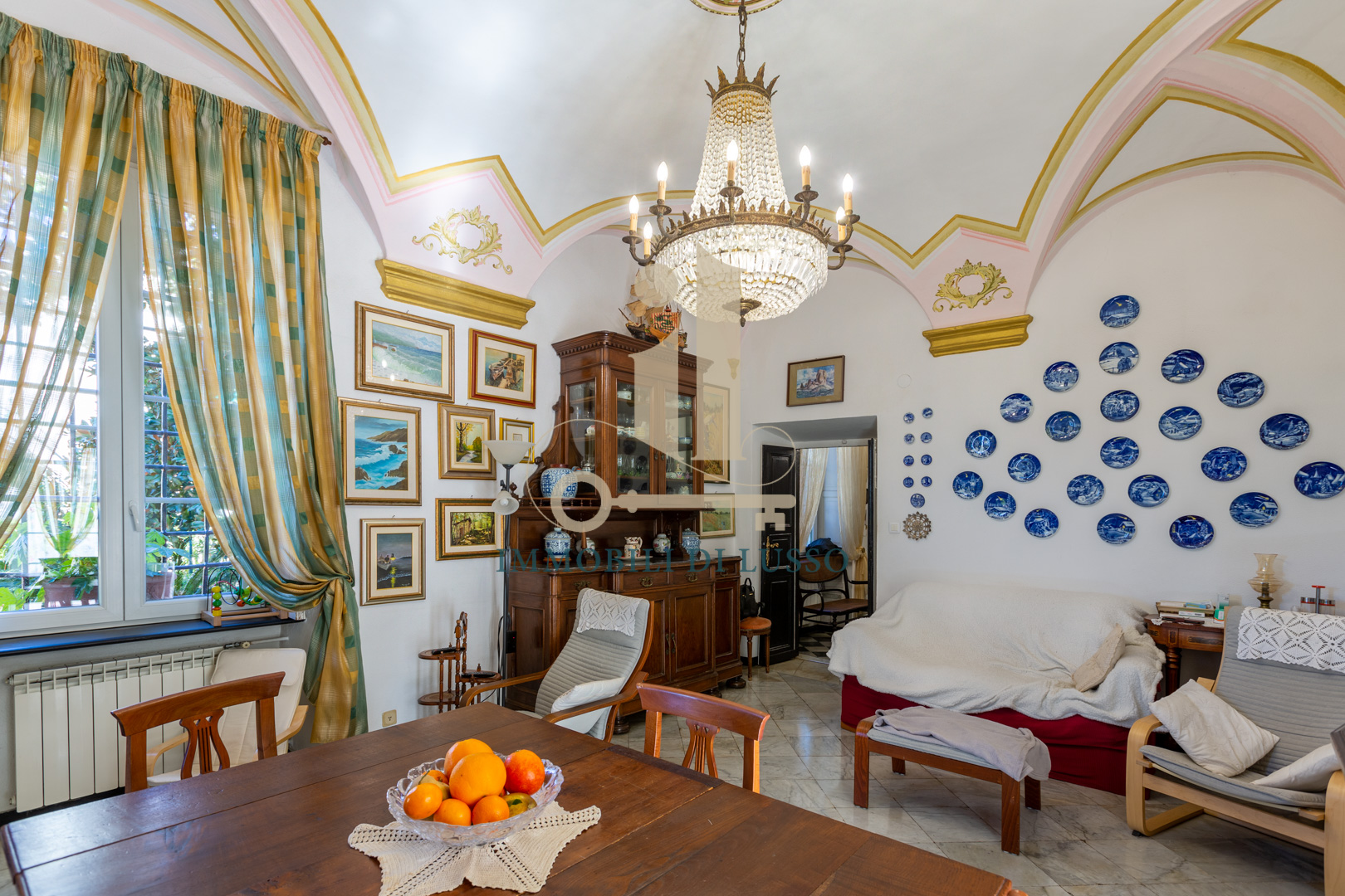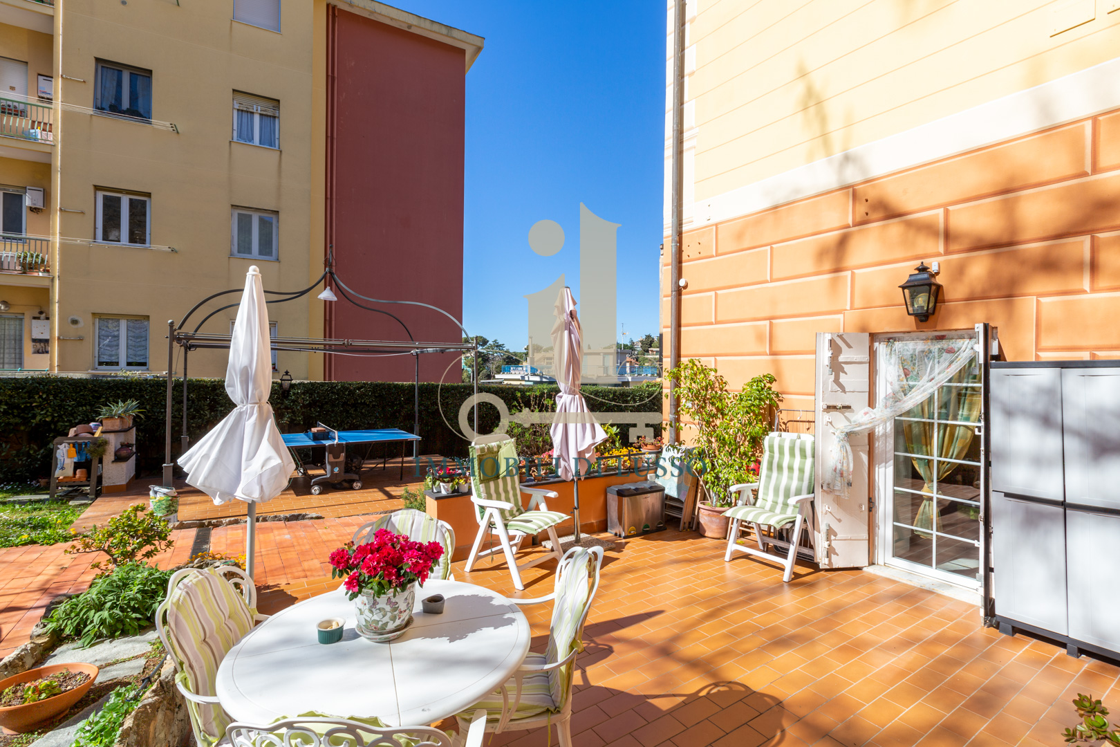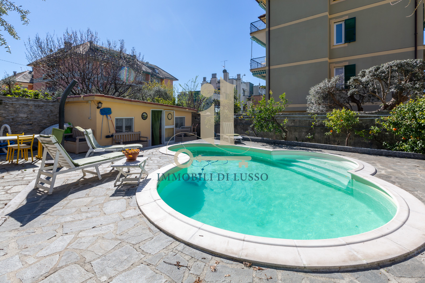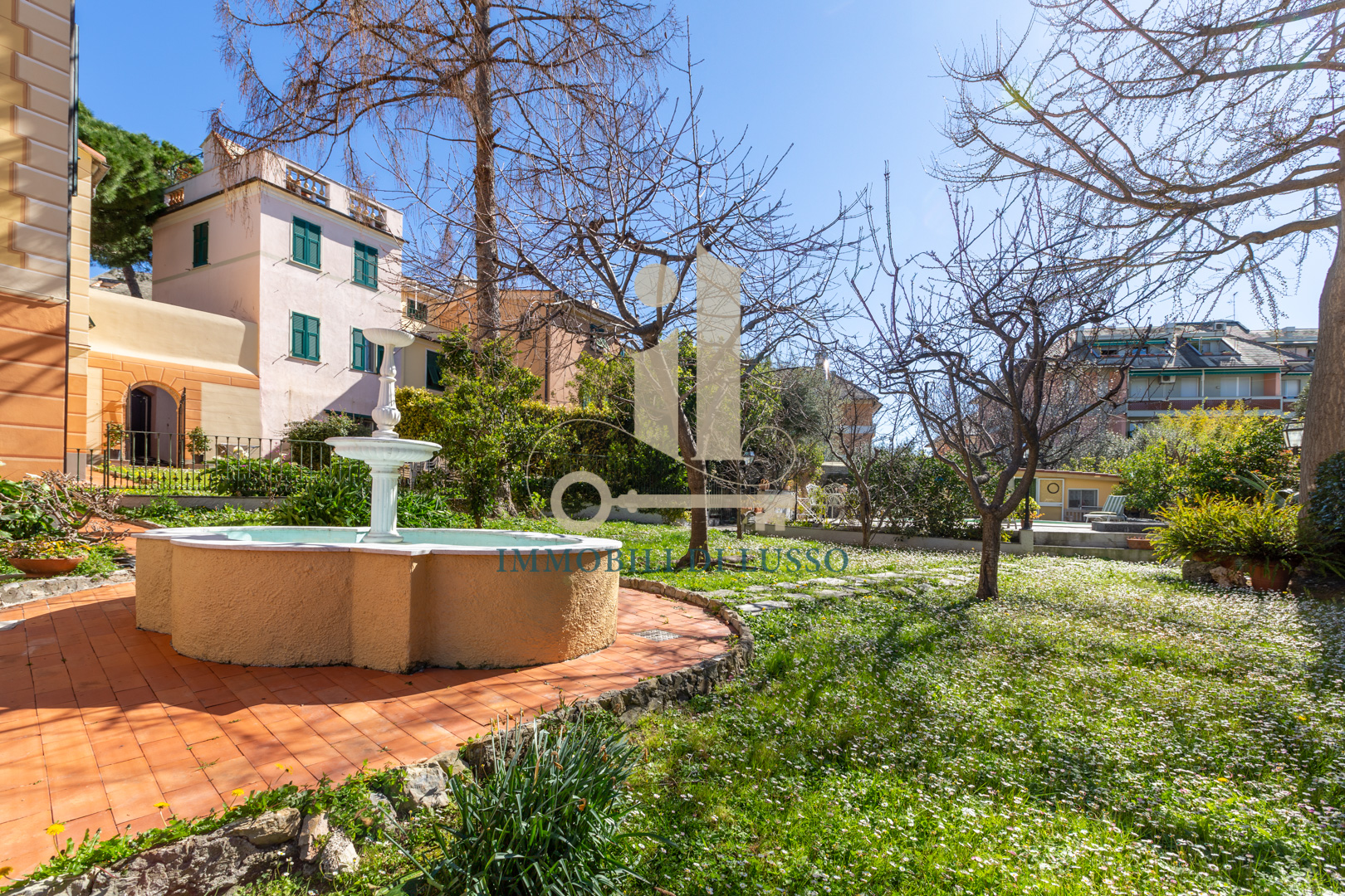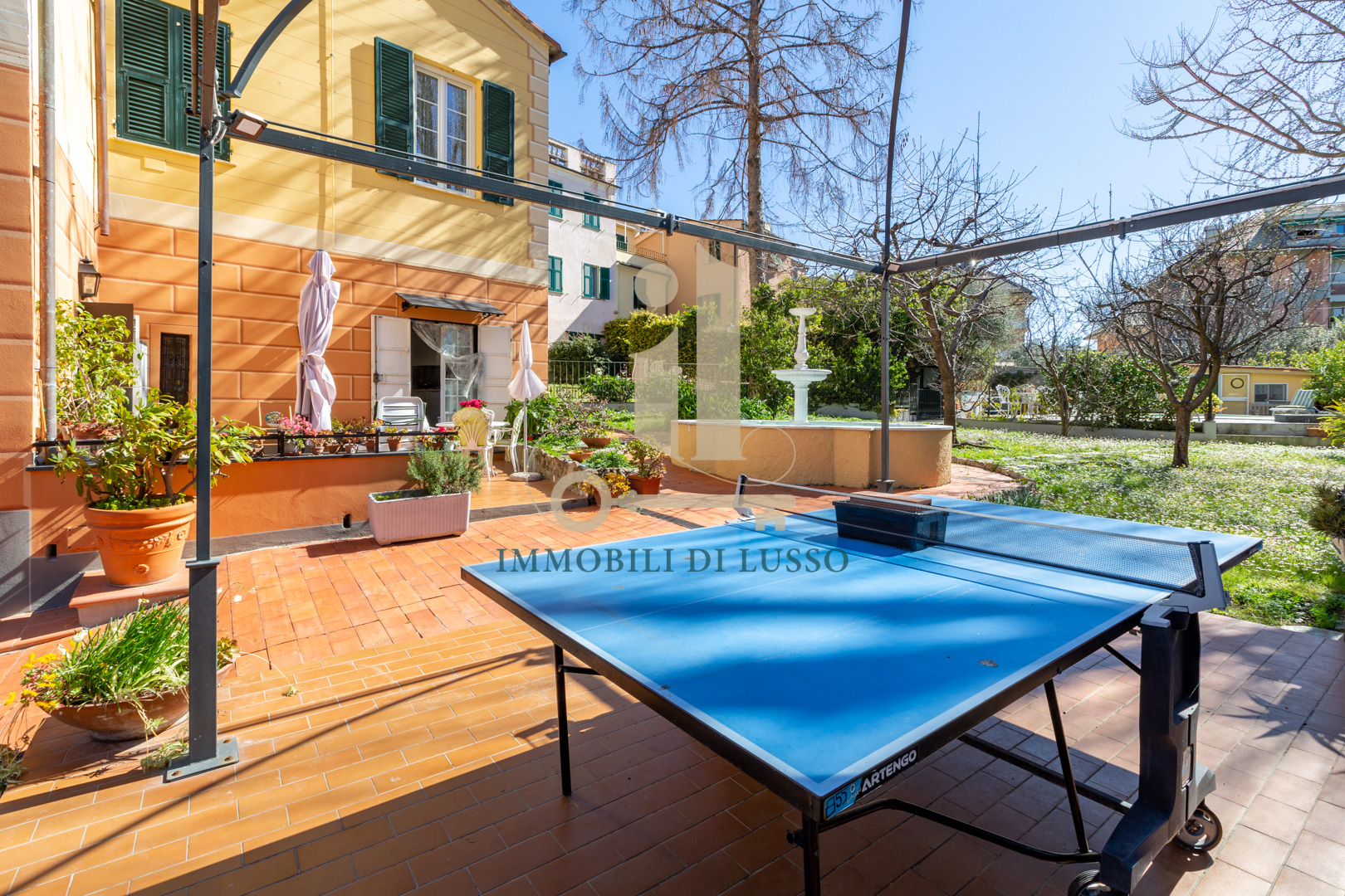 Genova Quinto, proponiamo in vendita, in Via Majorana, porzione di villa disposta su tre livelli appena ristrutturata in tutte le sue parti esterne. Attraverso una via di proprietà, si accede all'immobile, che si trova in contesto tranquillo e comodo ai servizi; immerso nel verde di un inaspettato giardino con piante e alberi. Nel grande giardino, molto curato e bene esposto si trova anche una bella piscina dove poter godere di momenti spensierati con familiari ed amici; esternamente si trova anche un'ampia e utile pool house. Questa casa, dallo stile elegante e con bellissimi affreschi in alcune delle sue stanze ha una superficie di circa 320 mq. Il piano terra è composto da spazioso ingresso, cucina abitabile con lavanderia, soggiorno con soffitto affrescato, ricco di luce grazie alle doppie finestre, con accesso diretto al giardino ed allo spazio esterno dove si trova anche una fontana. Attraverso una comoda scala in marmo si accede al primo piano dove si trova la zona notte, con due camere matrimoniali, una delle quali dotata di bellissimo soffitto a volta affrescato; un grande bagno con doccia, uno studio ed un piccolo bagno di servizio completano il piano. Al secondo piano mansardato, troviamo un vero e proprio appartamento composto da salotto con accesso diretto al terrazzo dal quale si gode di una bella vista sugli spazi esterni sottostanti; cucina abitabile, soggiorno con scala interna che conduce ad un altro terrazzo, con vista sulla città e sul mare in lontananza, due grandi camere matrimoniali, un bagno e un sottotetto attualmente adibito a magazzino. Una comoda e spaziosa cantina completa questa unità immobiliare.