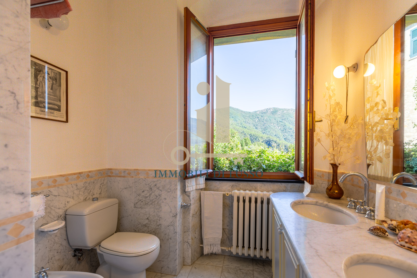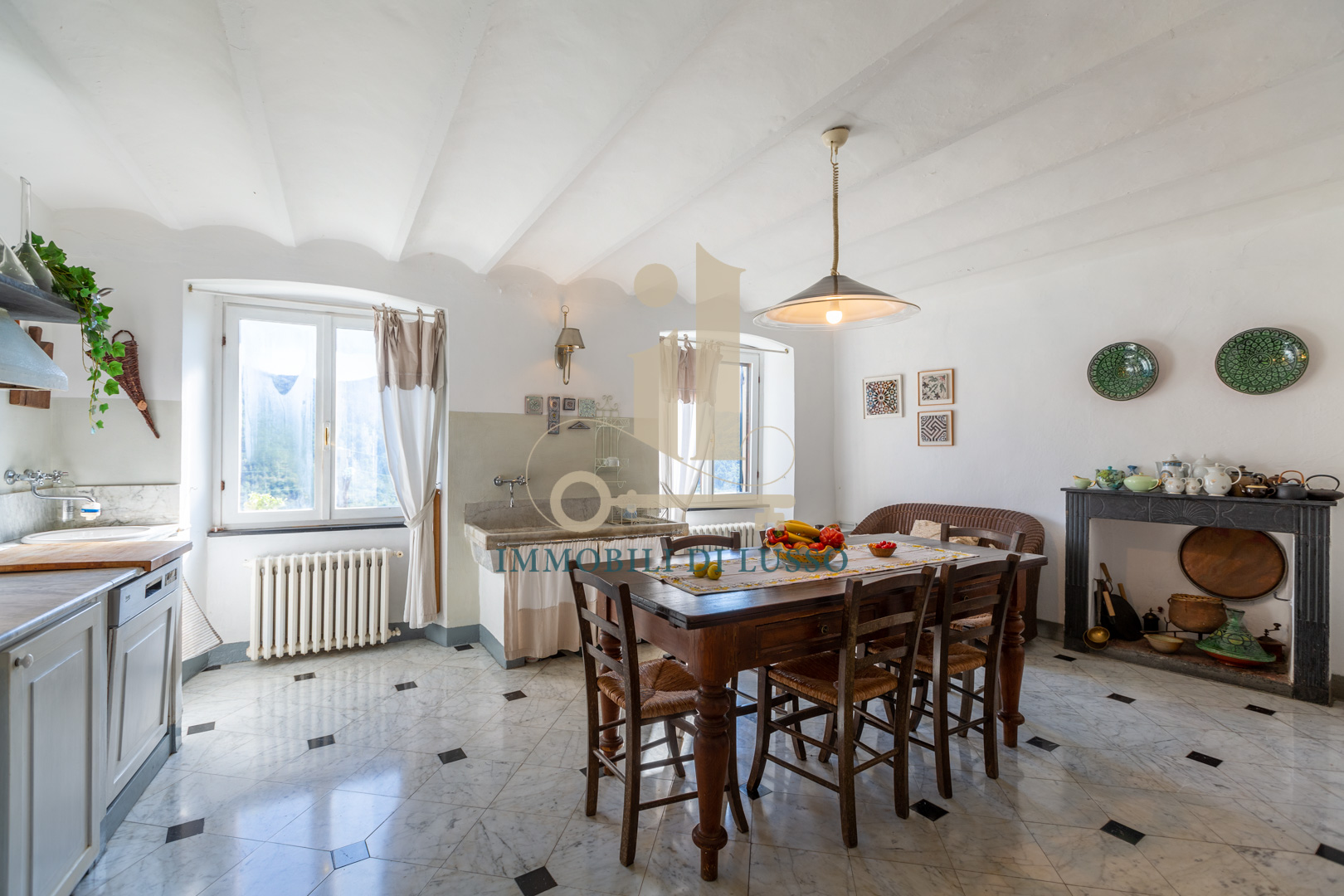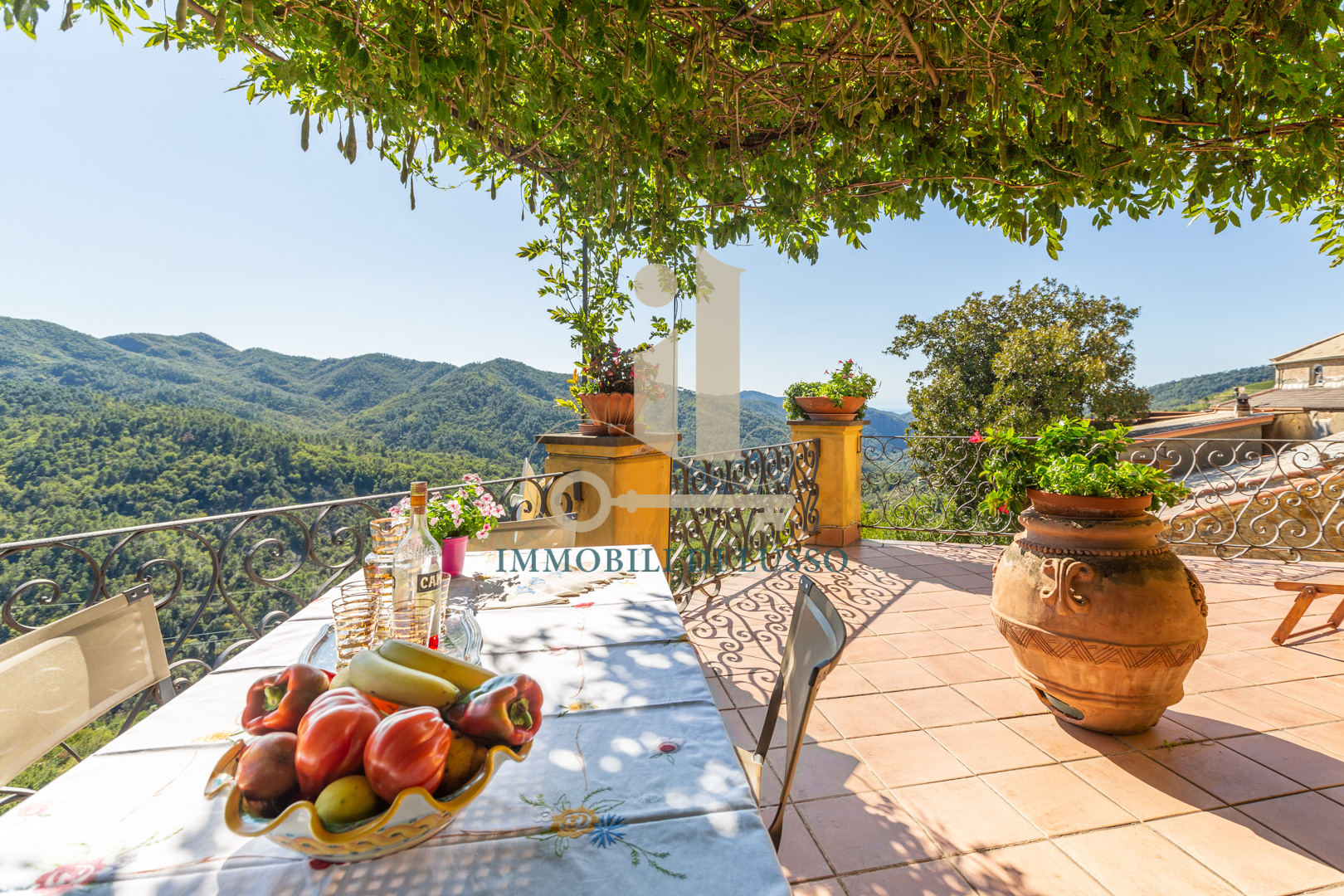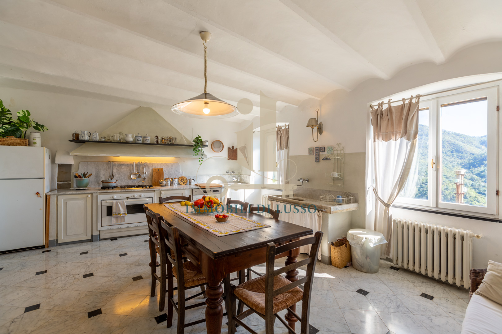 Nell'entroterra di Sestri levante, in Val Petronio, una valle aperta e ben esposta, si trova Velva, un piccolo borgo medioevale dove regna la quiete e la tranquillità, lontano dalla confusione della città, un borgo molto amato dai turisti stranieri, poiché la vita qui è scandita da un ritmo lento e la quotidianità è fatta di piccoli e semplici gesti. Situata sulle colline Liguri, a circa 15 Km da Sestri Levante, proponiamo in vendita dimora storica di rara bellezza. L'abitazione di origine settecentesca si trova nel centro storico del paese, raggiungibile solo a piedi attraverso viuzze e caratteristici gradini. Questa meravigliosa casa si trova vicino alla chiesa del paese ed è posta in posizione dominante sulla vallata, con una vista che si estende dai vigneti e dai boschi circostanti, fino al mare. Questa lussuosa villa storica è costituita da una parte costruita nel 1500 ed appartenuta probabilmente al clero, come testimoniano alcune ardesie intagliate con simboli religiosi, alla quale poi sono state fatte aggiunte successive. Ristrutturata completamente negli anni '90, l'edificio ha mantenuto il fascino e l'eleganza del tempo passato grazie al sapiente restauro effettuato dai proprietari. La proprietà di 600 mq si sviluppa su più livelli ed è attualmente suddivisa in due unità abitative distinte, che possono essere unificate con alcune opere edili. Una parte di 400 mq circa è disposta su due piani con due meravigliosi terrazzi panoramici e uno splendido giardino di 1000 mq con fiori, ulivi e alberi da frutta; l'altra, con ingresso indipendente è di circa 200 mq. In questa antica abitazione si trovano 6 camere matrimoniali, 5 bagni completi e 3 di piccole dimensioni, lavanderia, una stupenda cucina con camino, forno a legna e caratteristico lavandino in marmo, grandi saloni con camini funzionanti, due cantine ed una taverna in pietra. Moderno e antico, passato e presente si fondono magicamente in questa dimora di charme, dove accanto ai pavimenti di cotto antico, mosaici e cementine, parte del 700, nicchie con immagini di culto e antiche ardesie con fregi religiosi fanno capolino opere moderne come l'impianto fotovoltaico, la caldaia a pellet, pompe di calore, pannelli solari e aria condizionata. Completano la proprietà due posti auto a circa 70 metri dalla proprietà. Il fascino e la raffinatezza di questo immobile, immerso nella bellezza e nella tranquillità del luogo, non vi lascerà indifferenti, è un'ottima opportunità per una villa mono o bifamiliare, ma può essere utilizzata anche come struttura turistica ricettiva. Il progetto già approvato per la piscina aggiunge sicuramente valore alla già suggestiva proprietà.